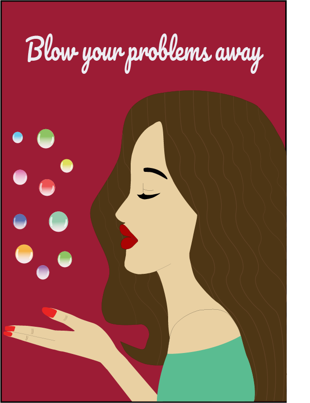 for one of my personal projects i did a girl blowing out bubbles. I wanted to emphasize that people have Problems to deal with, so you can always find a solution and not stress about it. I got this inspiration from a shirt that I have and I wanted to recreate my image of it.
