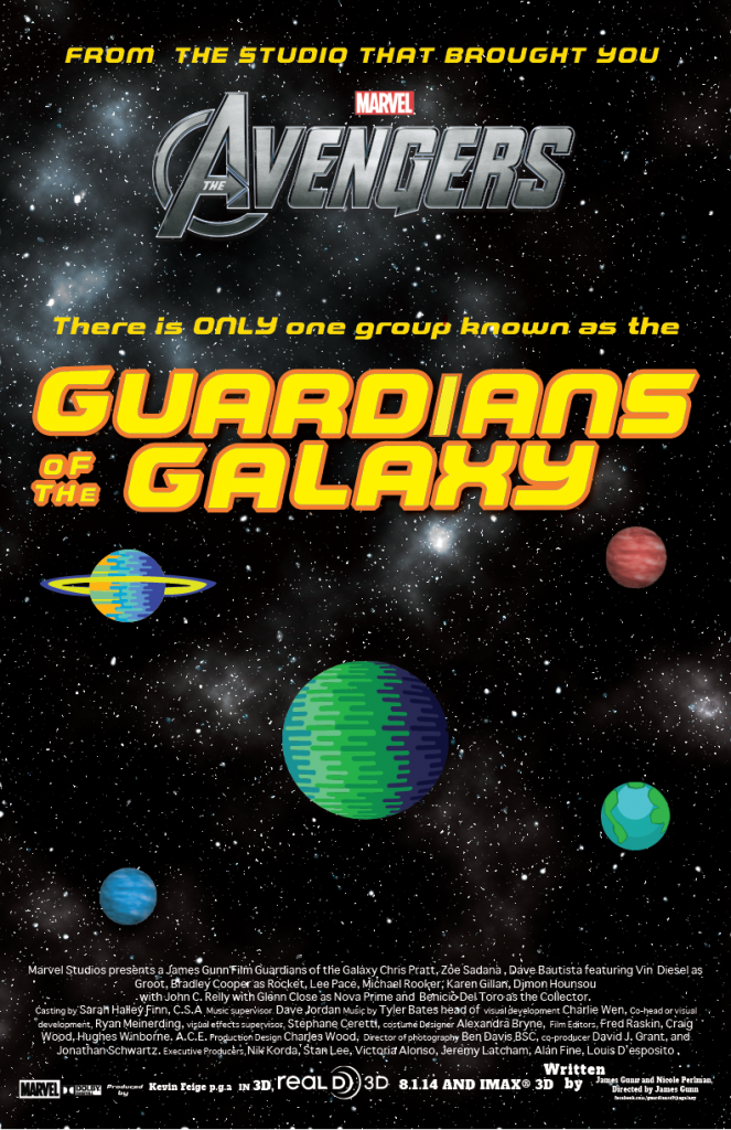 Redesigned for the Guardians of the Galaxy movie. I wanted to make the poster simpler to reflect on space and planets and not so much on the actors.